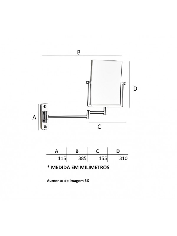 Espelho Retangular Articulado Cromado E6535 - Italyline