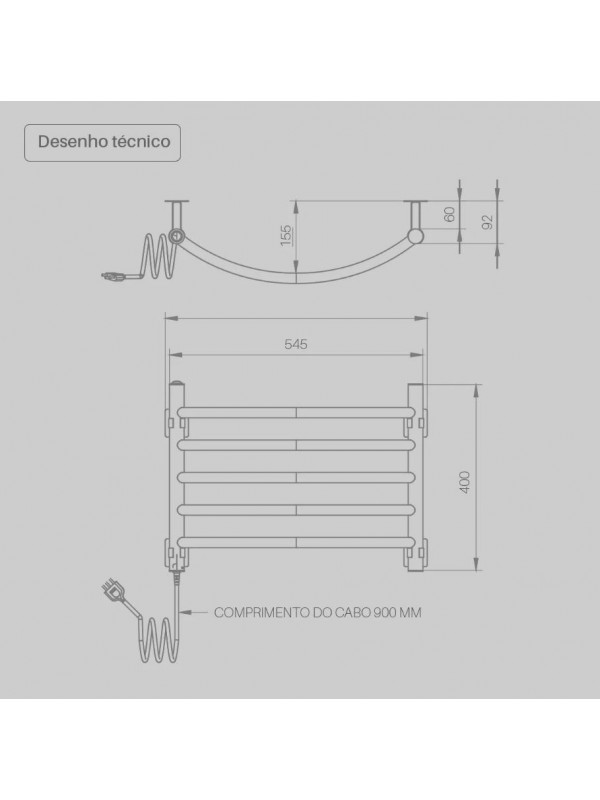 • Aquecimento: Todas as potências dos modelos de toalheiros são especificados para uma temperatura, em média, de 35 graus celsius (C°), não havendo possibilidade de provocar queimaduras em pessoas.