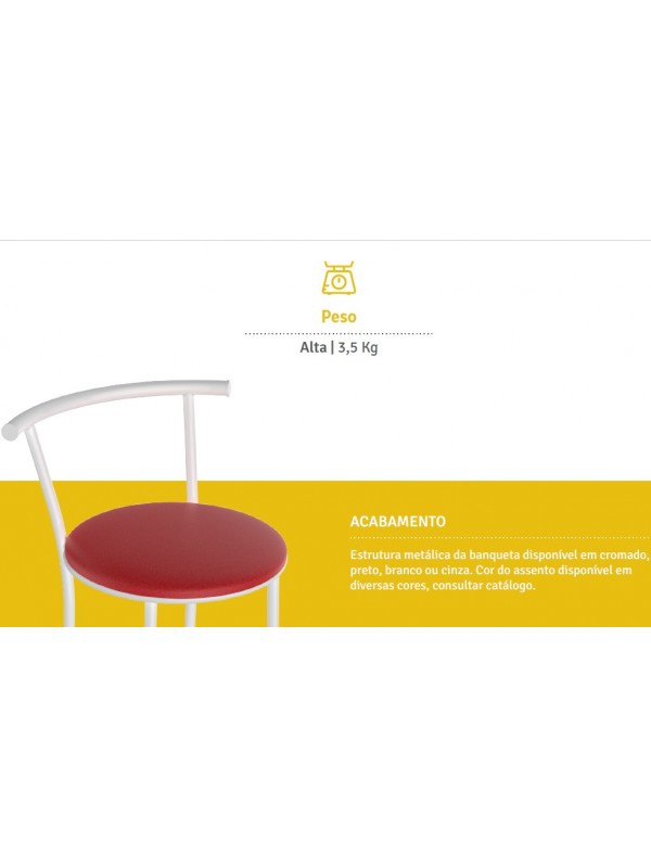 Banqueta com acabamento Cromado. Caso deseje a estrutura com Pintura Epoxi nas cores branca, preta ou cinza, nos informe após a compra.