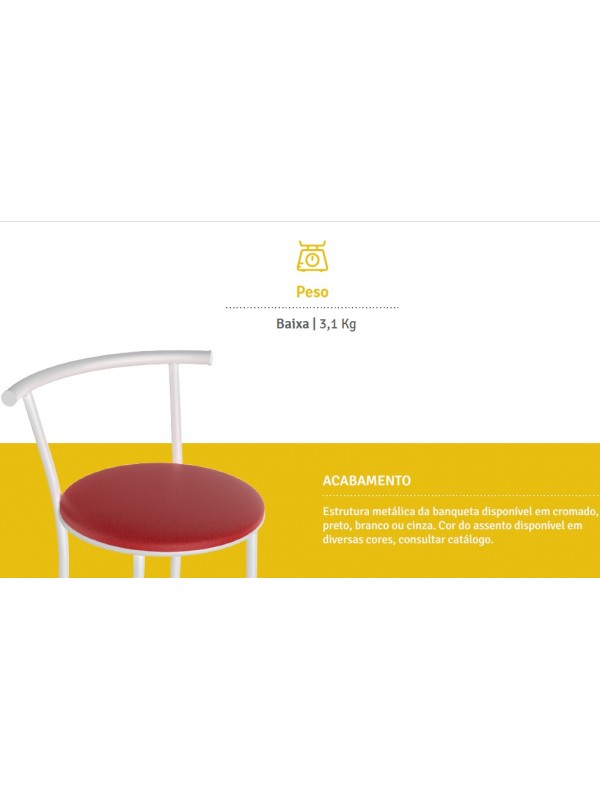 Banqueta com acabamento Cromado. Caso deseje a estrutura com Pintura Epoxi nas cores branca, preta ou cinza, nos informe após a compra.