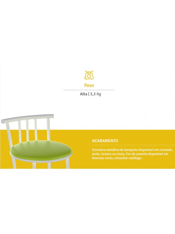Banqueta com acabamento Cromado. Caso deseje a estrutura com Pintura Epoxi nas cores branca, preta ou cinza, nos informe após a compra.