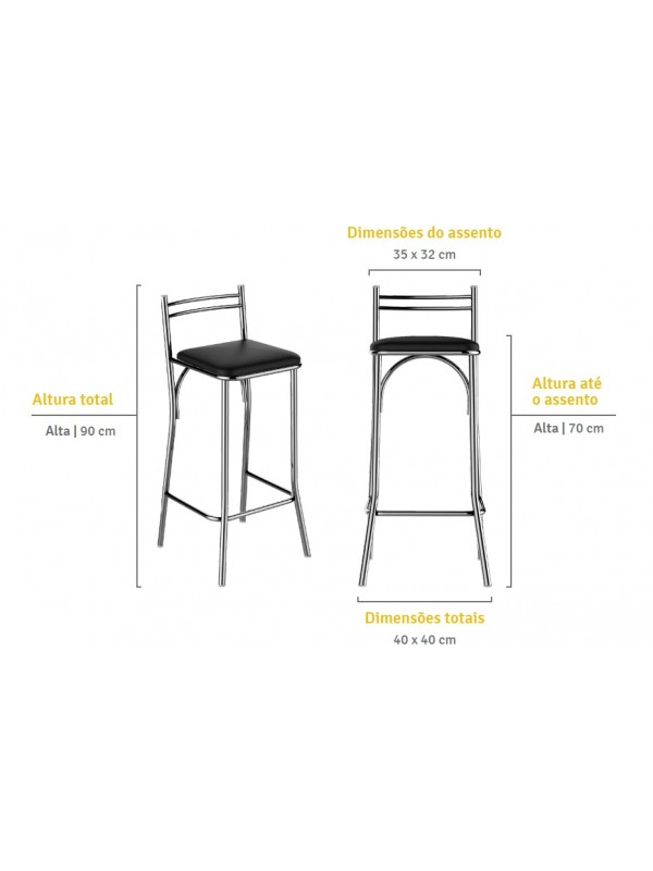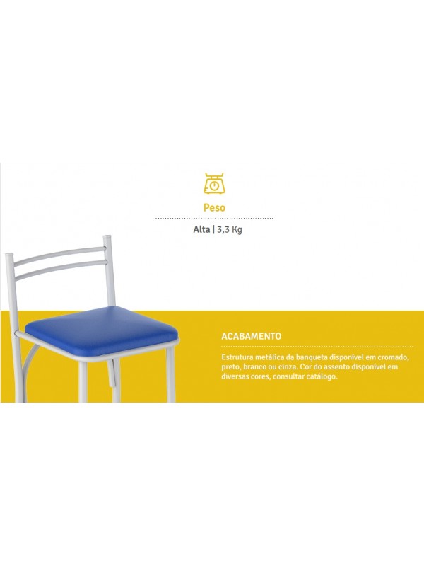 Banqueta com acabamento Cromado. Caso deseje a estrutura com Pintura Epoxi nas cores branca, preta ou cinza, nos informe após a compra.