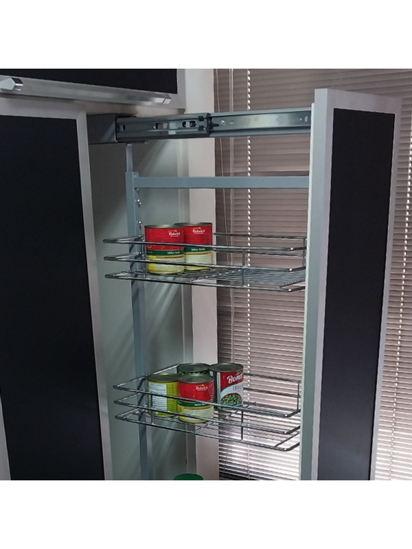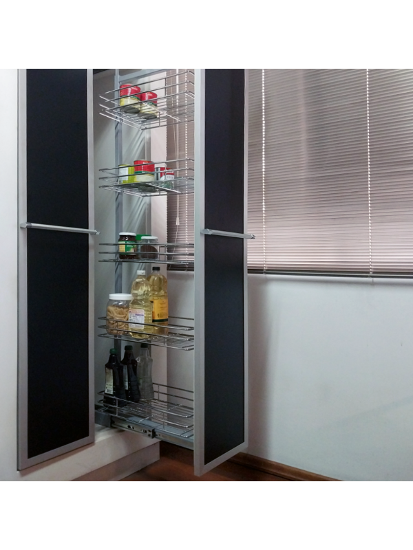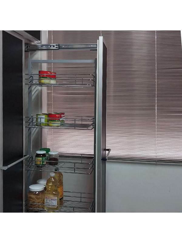 - Deslizamento Suave e Completo: Equipada com um Trilho Largo e robusto, o sistema deslizante de alta qualidade garante a extração total da coluna (90cm de abertura em corrediça aberta), proporcionando acesso completo aos 5 cestos.
