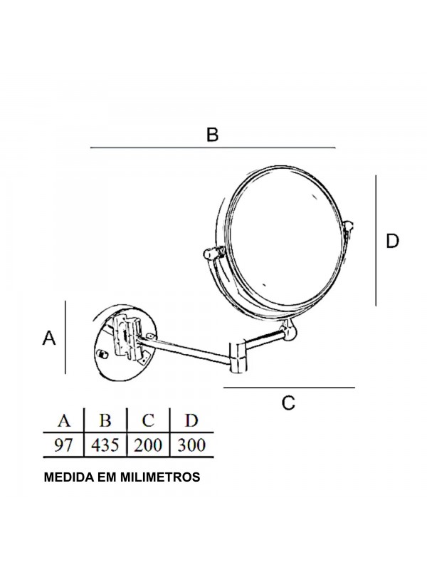 Produzido em Metal , que confere maior qualidade e a durabilidade ao produto, uma das faces do espelho é Normal e a outra amplia a imagem refletida em 5X vezes. Sofisticado e elegante, possui ainda movimento giratório do espelho em até 360 graus, que facilita na direção e focalização da área desejada.