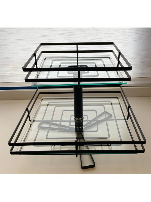 Fruteira de Mesa Giratória com Vidro Quadrada Preto Fosco