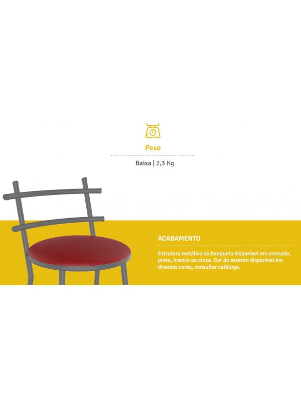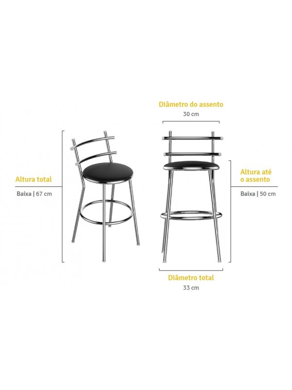 Banqueta Cozinha Cromada Redonda Madri Baixa 50cm - Flape