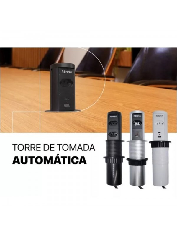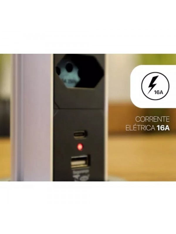 Torre de Tomada Automática 1 Tomada + 2 USB (Branca, Prata ou Preta)