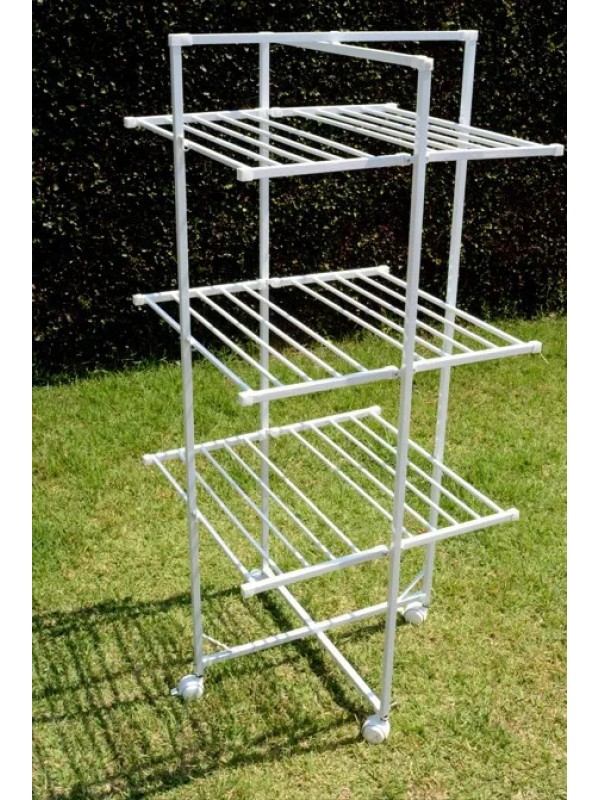 Varal Dobrável Multiuso Regulável 3 Andares 4 Rodas Alumínio