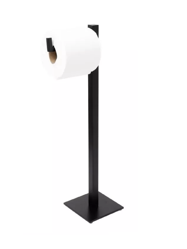 Papeleira Quadrada de Chão Inox cor preta - Para 1 Rolo