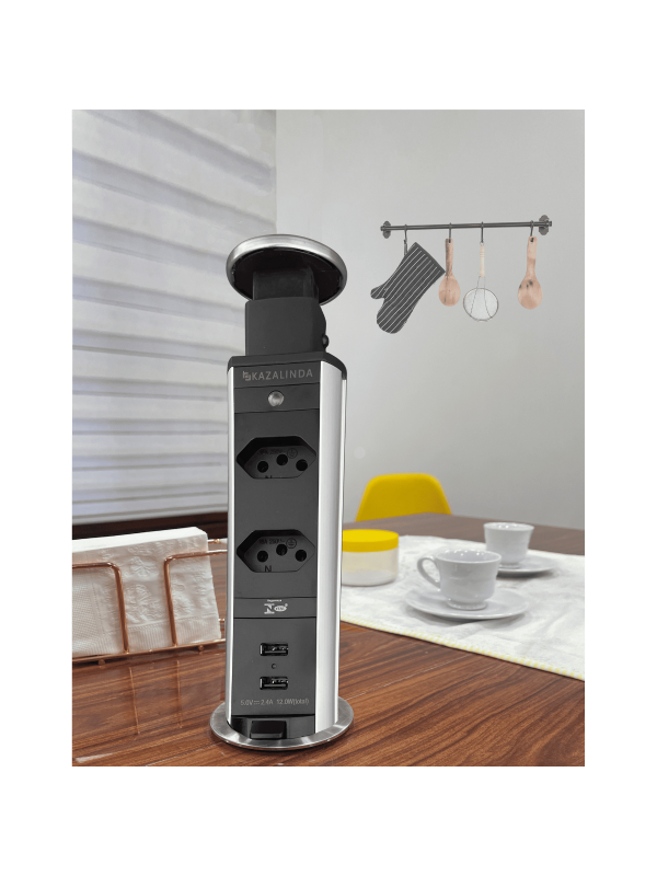 Chega de fios espalhados e falta de tomadas! A Torre de Tomada de Embutir Kazalinda é ideal para você.