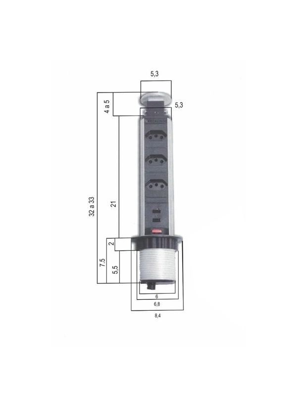 Torre Multiplug Retrátil Com 3 Tomadas e 2 USB Embutir - Kzi