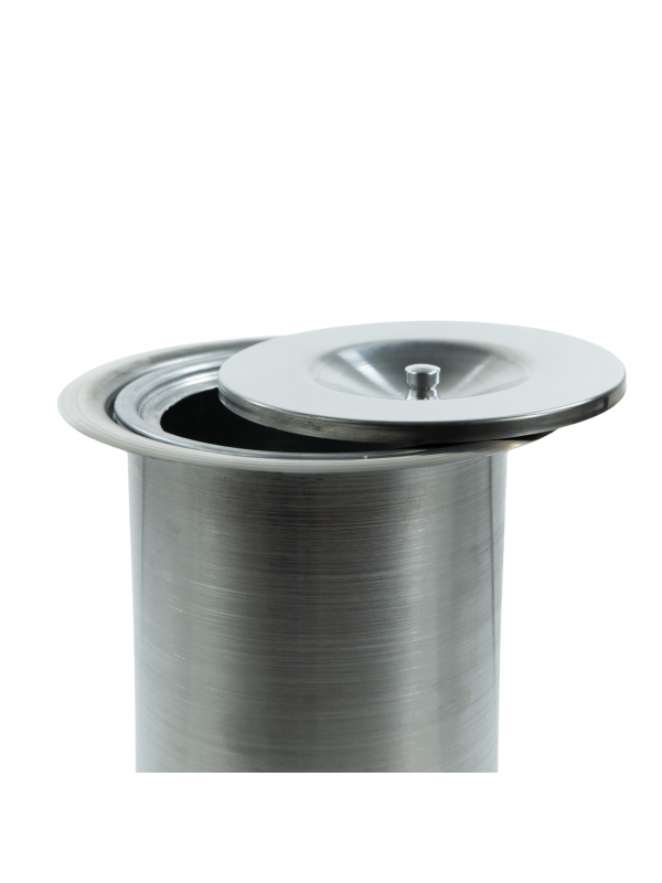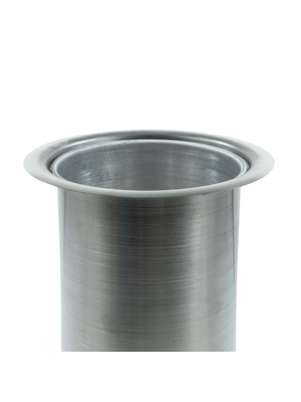 Material: Tampa em Inox 304 Polido e Balde em Alumínio repuxado, não tem pontos de solda para melhor acabamento e não oferece risco de vazamentos.