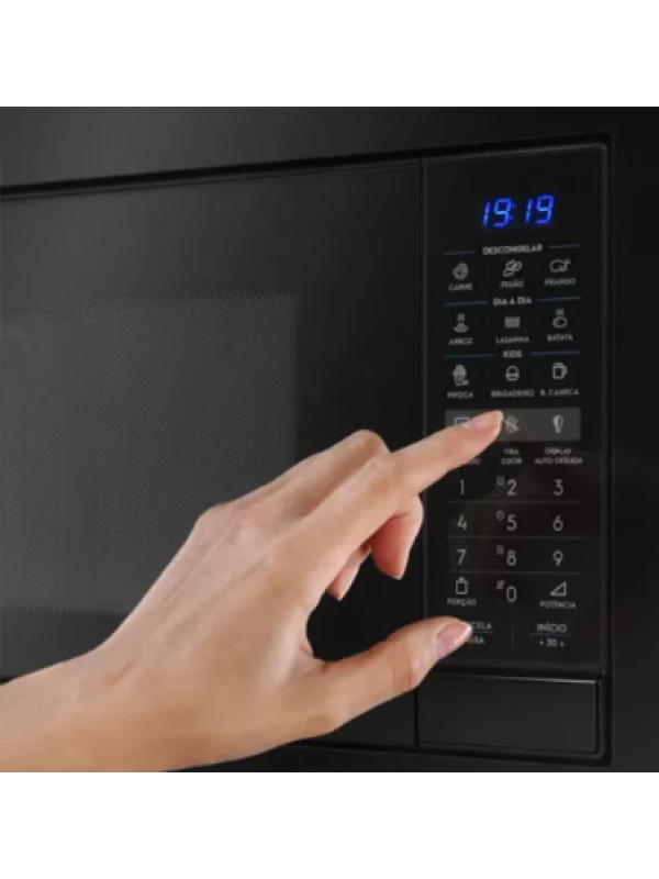 Seu painel digital com display azul faz deste Micro-ondas a peça com aspecto único e destacado, auxiliando em sua visualização e sendo fácil de manusear.