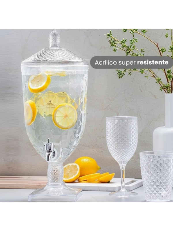 Sirva com Elegância e Praticidade: Seu formato cilíndrico e a transparência do acrílico valorizam sucos coloridos, águas saborizadas e chás gelados, transformando qualquer bebida em um atrativo visual.